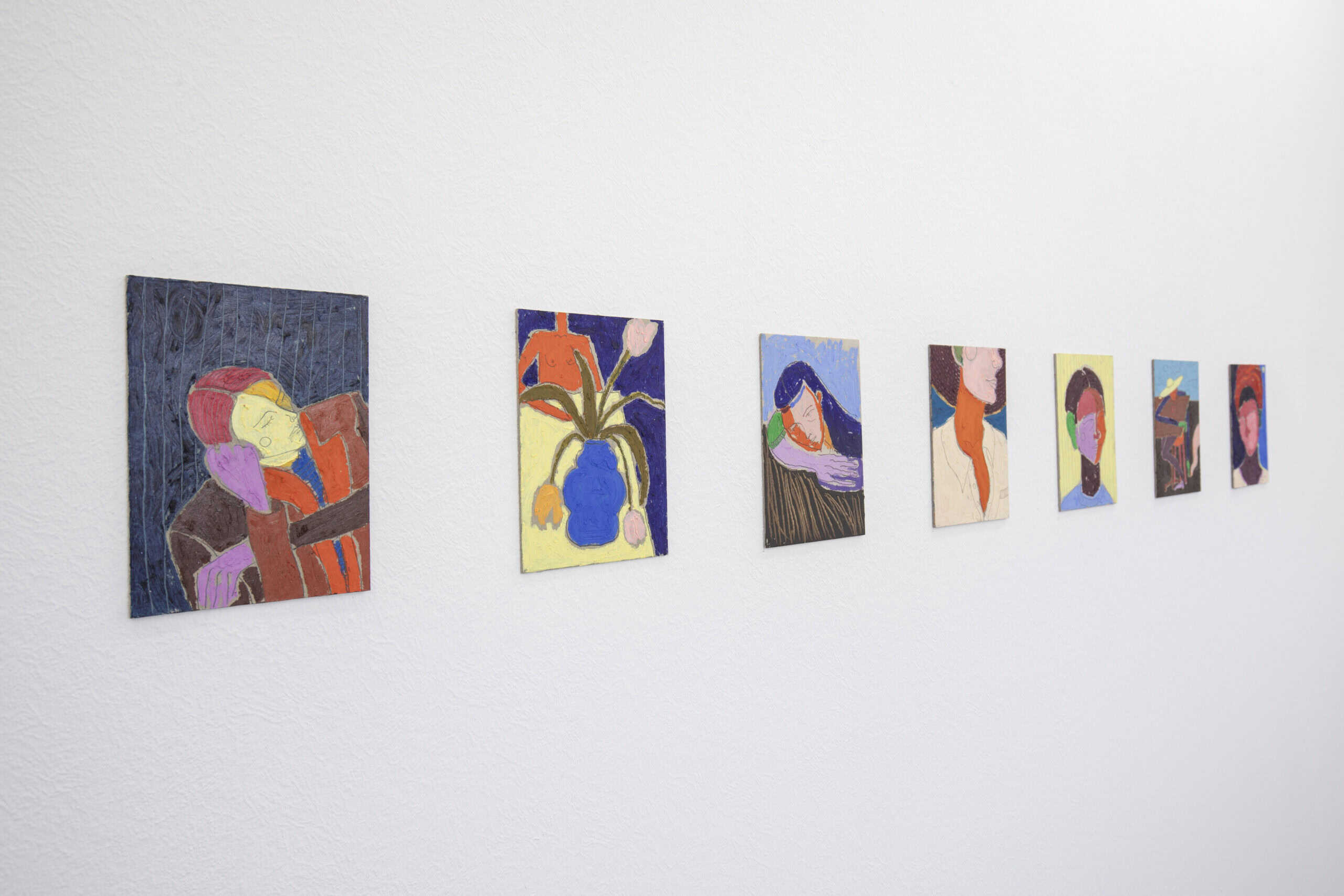Die streifigen gemusterten Hintergründe und Stoffe lassen einen an die tapetenartigen Ornamente der Hintergründe in den Bildern von Tschabalala Self denken. Die satten Primär- und Sekundärfarben, ihr flächiger voller Sättigungsgrad und die Körperhaltungen ihrer Figuren, insbesondere in der Druckgrafik, erinnern an die in New York arbeitende Österreicherin Katherina Olschbaur.